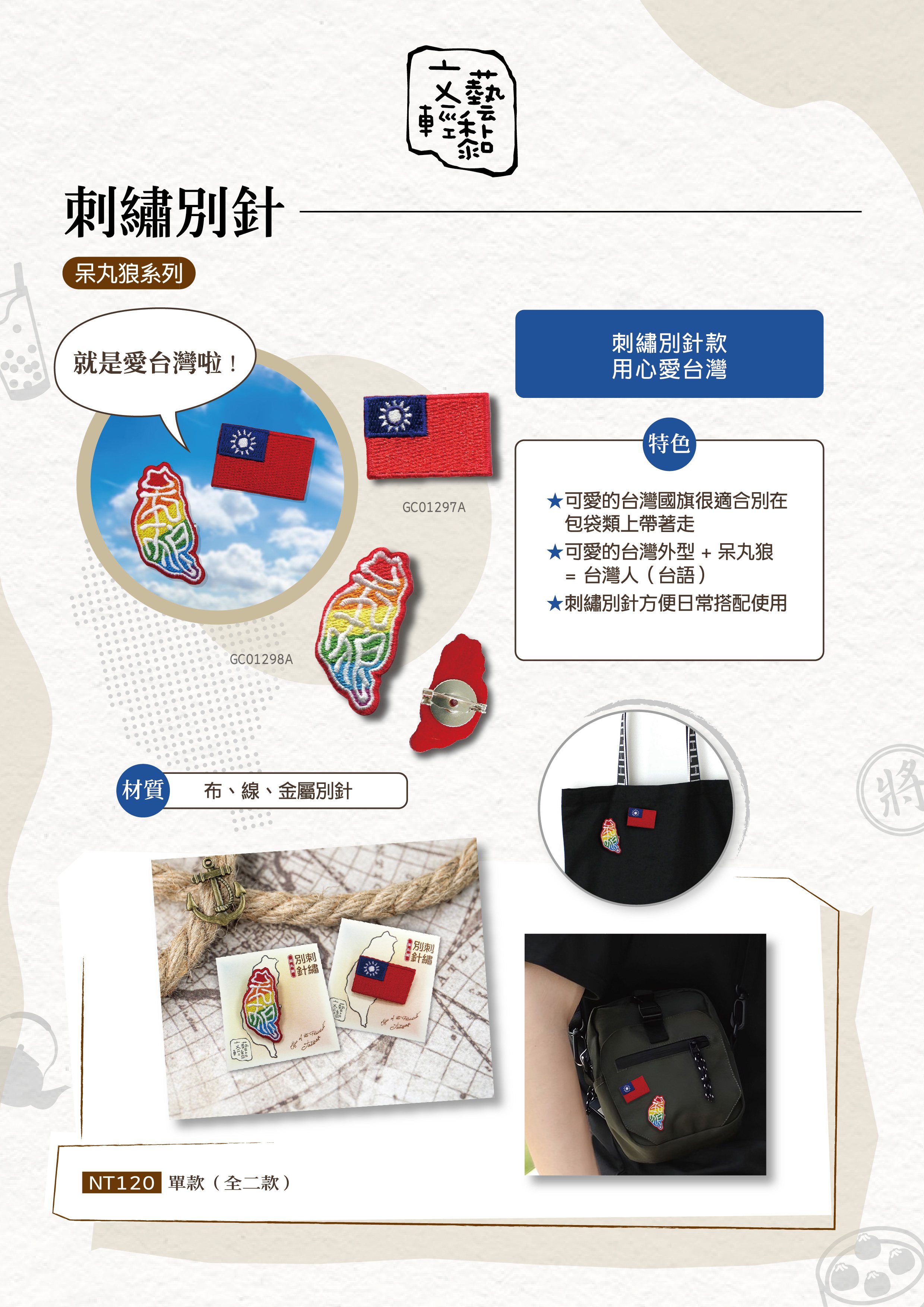 刺繡別針_愛台灣系列_呆丸狼