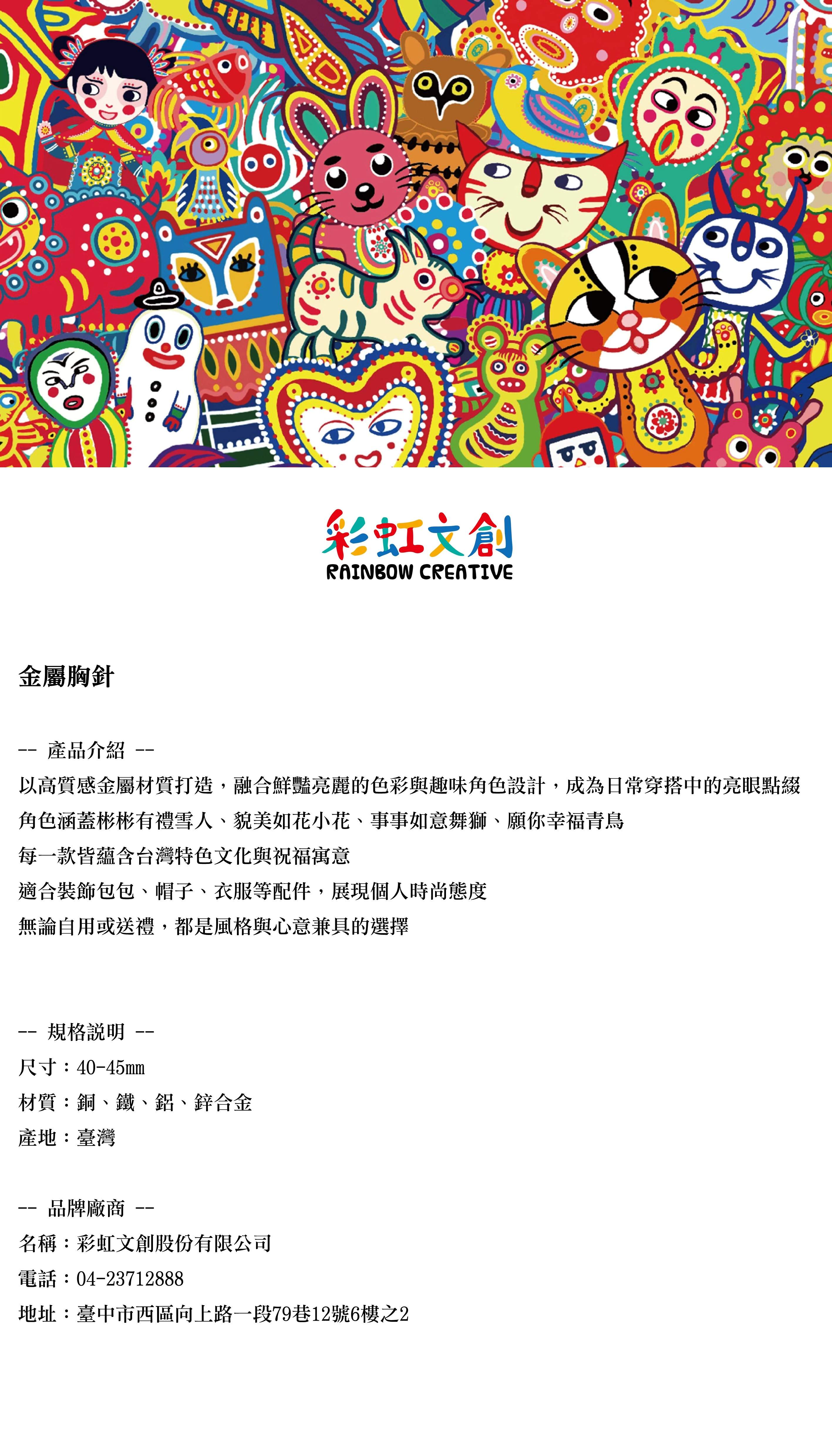 搭配彩虹文創人氣角色:彬彬有禮雪人、貌美如花小花、事事如意舞獅、願你幸福青鳥