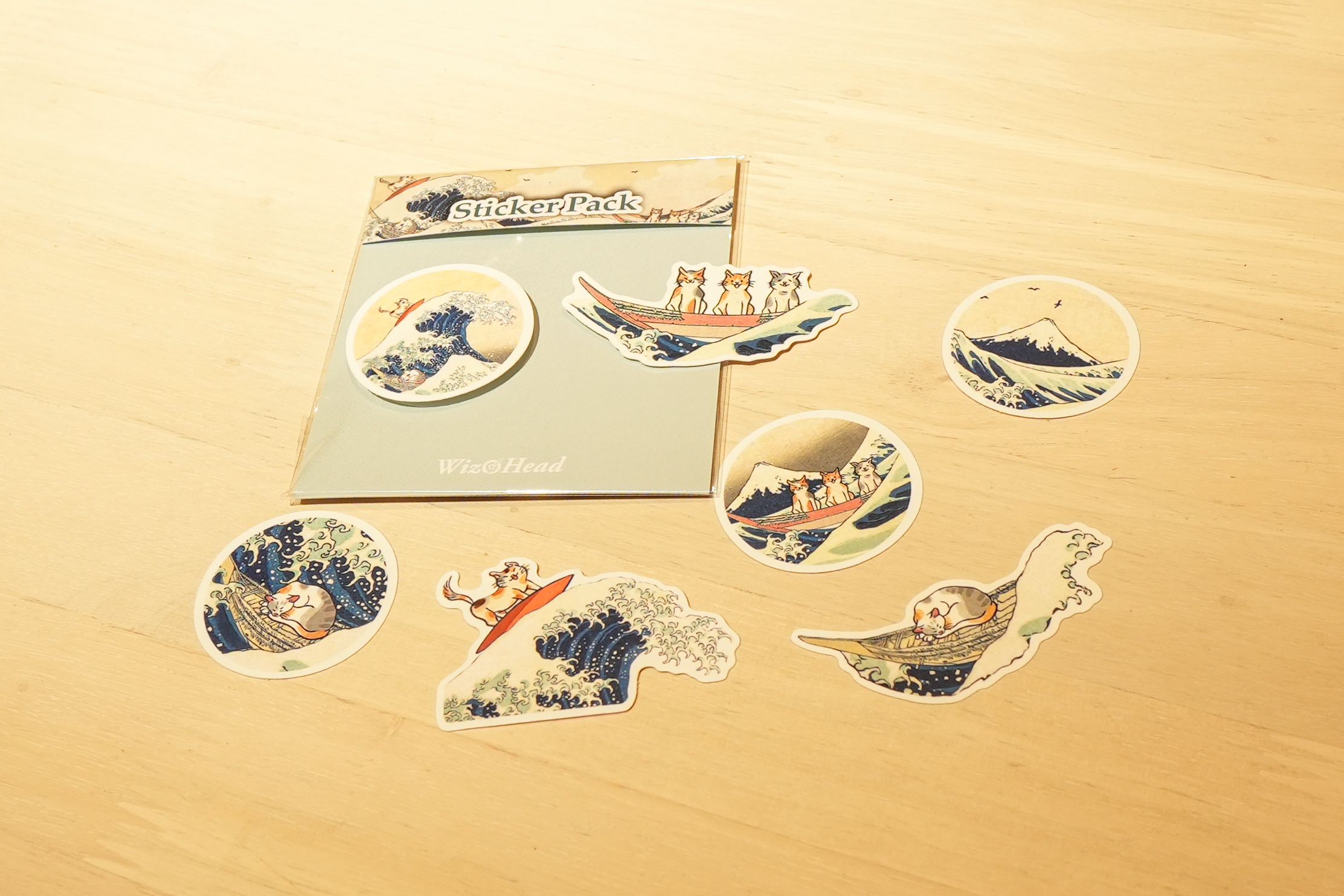 名畫防水貼紙_神奈川衝浪裏 / 衝浪貓咪(SJS)